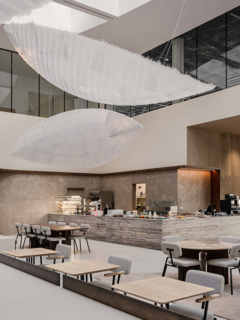 ✒ Kitchen and food experiences are a core pilar of our work From workplace restaurants to hospitality counters these spaces play a central role in the everyday life of a building. They are places of pause, exchange and shared moments. Designing them requires more than creating an attractive setting. Concept, spatial flow and operational performance must work together seamlessly. Circulation, visibility, materials and technical requirements all shape an environment that supports both the people who use the space and those who operate it. Through close collaboration between design and engineering we develop solutions that balance functionality, identity and atmosphere; spaces where food, movement and experience meet.