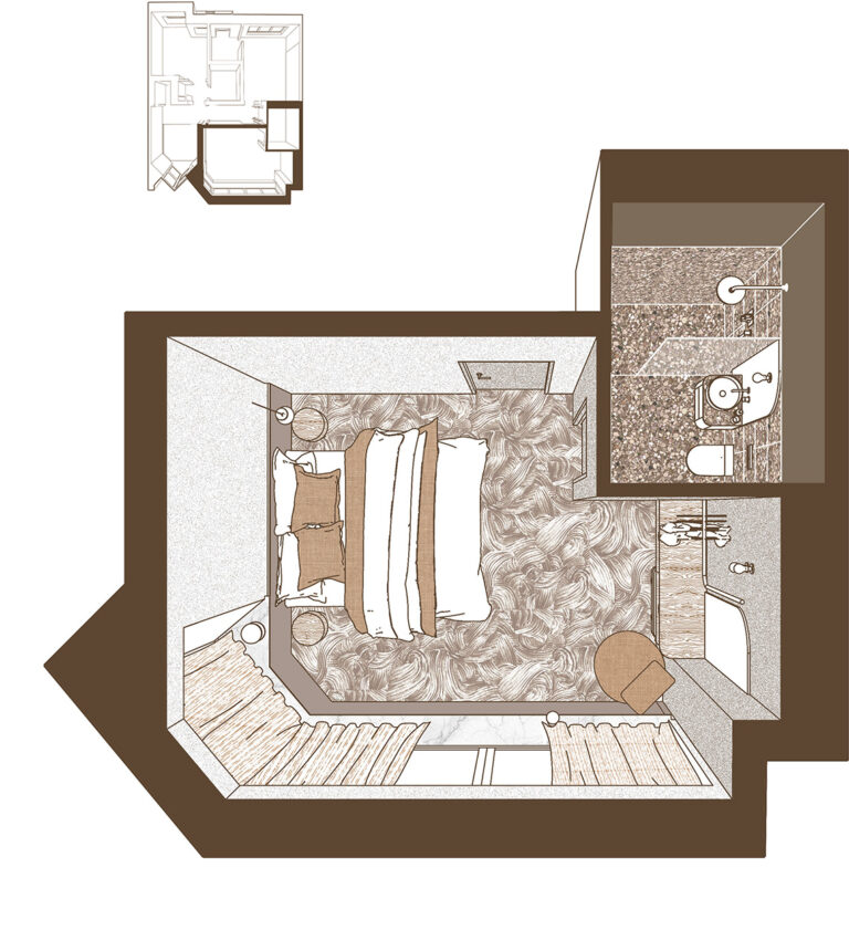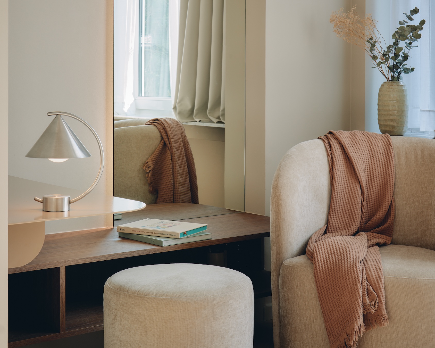 Our room revamp involved a complete reassessment of the finishes, paired with a rational optimization of space and integration of minimalist bespoke furniture, designed not to overwhelm the space or stand out, but to allow the rooms to breathe.