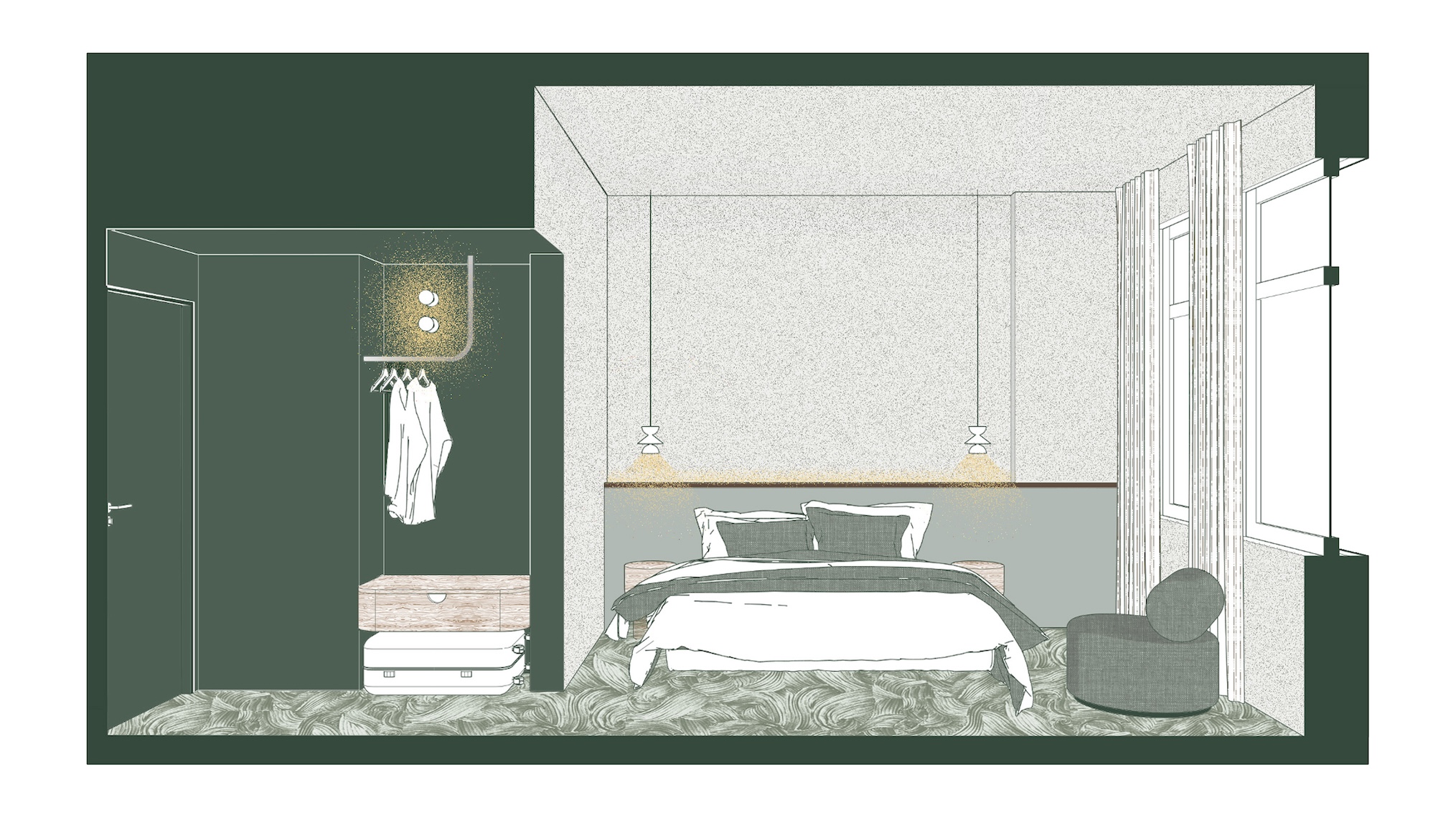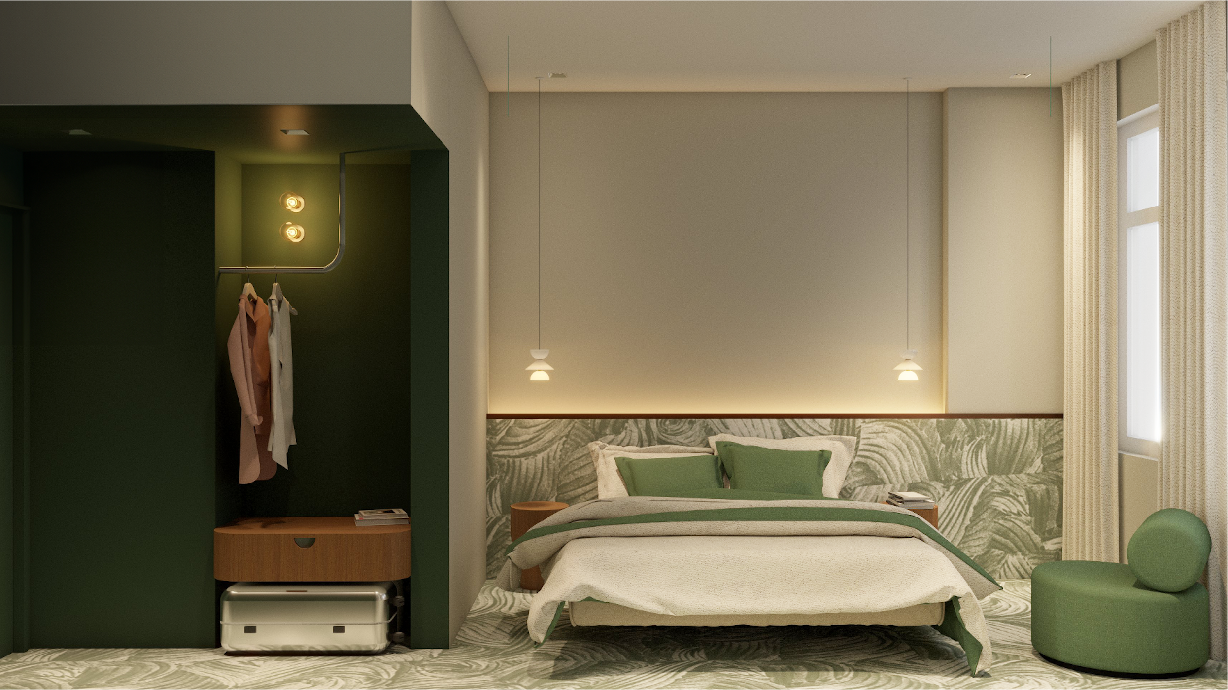 The mission extends to a full renovation of the 43 rooms, along with the ground-floor common areas including the lounge, reception, and cafeteria. Beginning with a test room now ready to experience, the works are set to be completed next year.