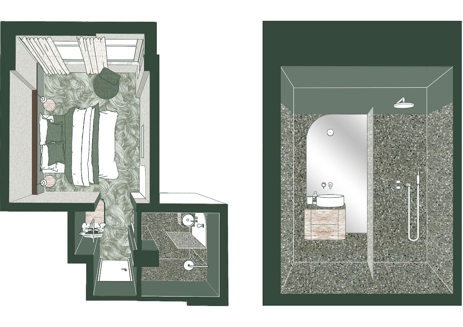 Our room revamp involved a complete reassessment of the finishes, paired with a rational optimization of space and integration of minimalist bespoke furniture, designed not to overwhelm the space or stand out, but to allow the rooms to breathe.