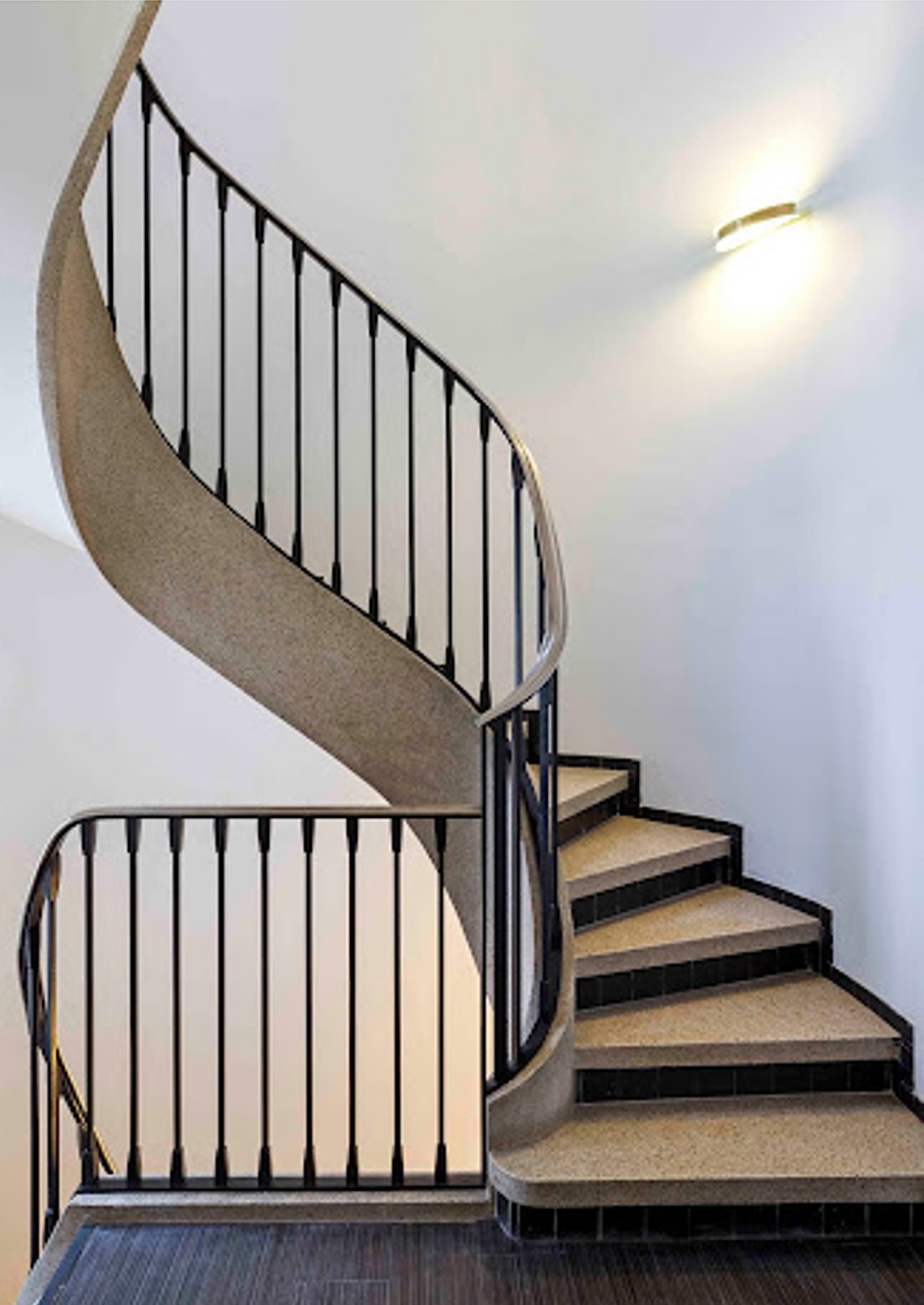 The existing interior staircase served as inspiration, its flowing, organic movement reinterpreted, echoing softly through the design of certain room features.
