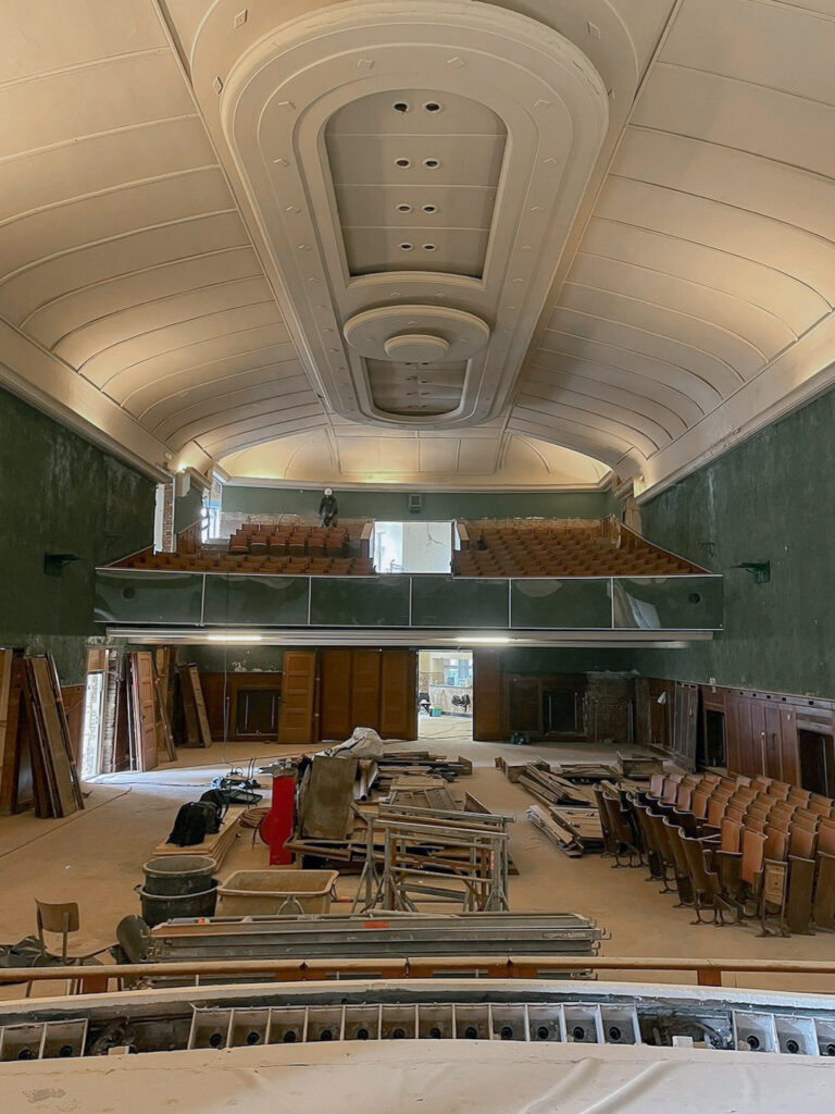Renowned throughout the region for its exceptional acoustics, the theatre is being carefully restored with the utmost respect for its heritage. Original features like travertine and terrazzo finishes, sculptural vertical light coves and intricate ceiling details are being meticulously preserved.