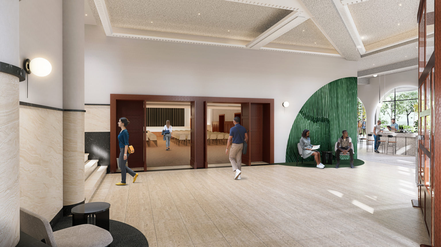 Renowned throughout the region for its exceptional acoustics, the theatre is being carefully restored with the utmost respect for its heritage. Original features like travertine and terrazzo finishes, sculptural vertical light coves and intricate ceiling details are being meticulously preserved.