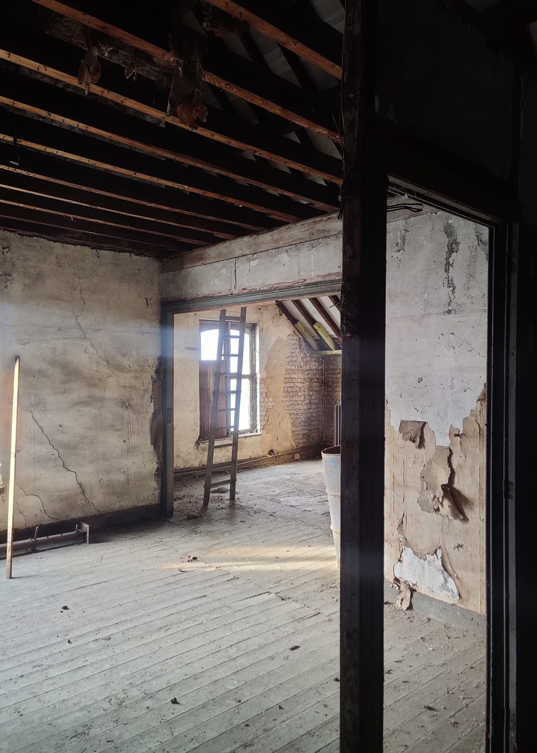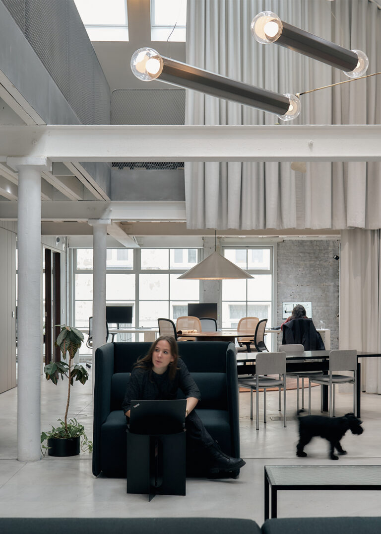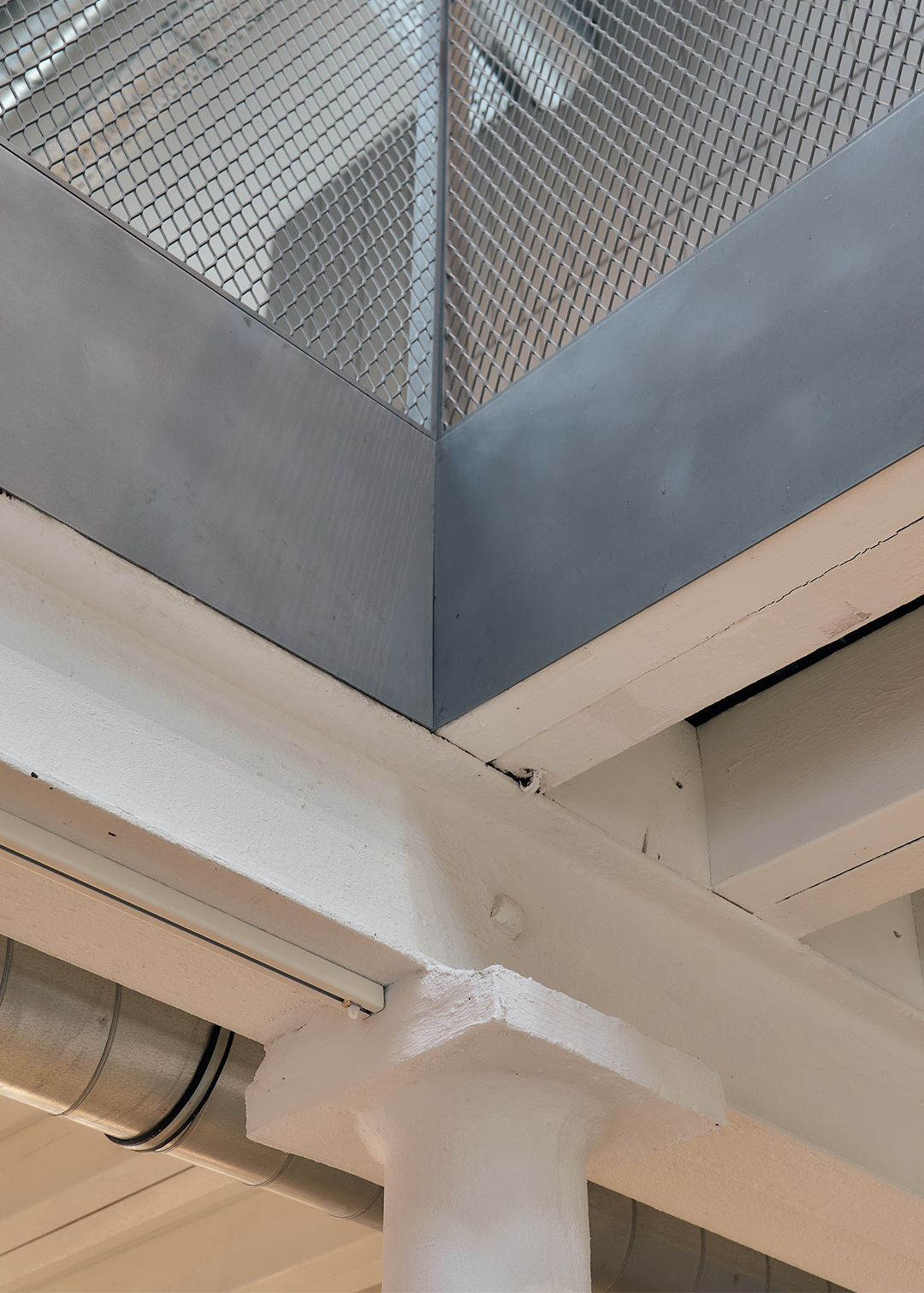 The renovation celebrates the building’s industrial character while introducing contemporary spatial dynamics. Structural interventions including a complete roof replacement and partial floor demolition bring natural light deep into the building and create fluid connections while original surfaces, exposed junctions and visible imperfections are preserved in a spirit of architectural honesty.