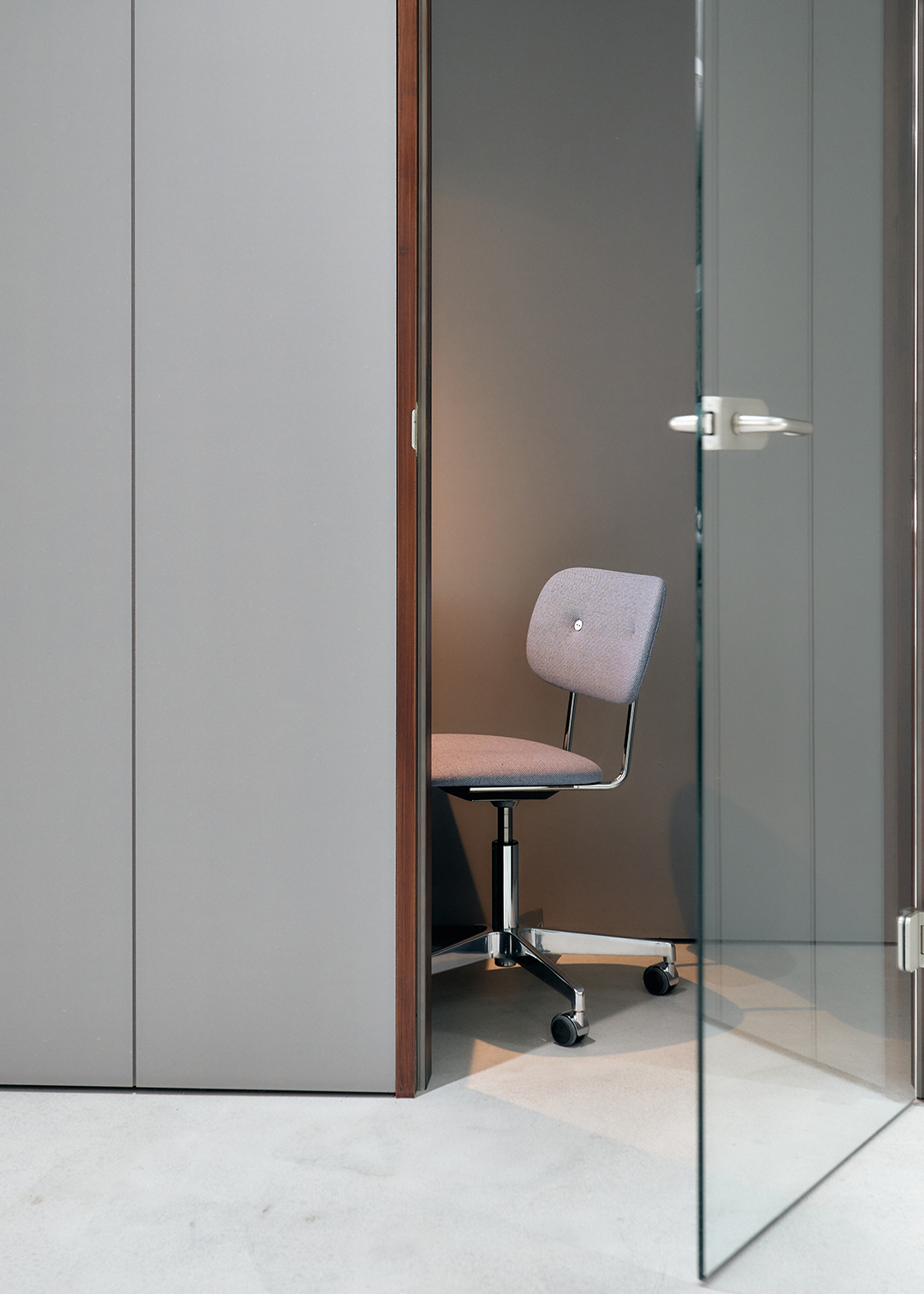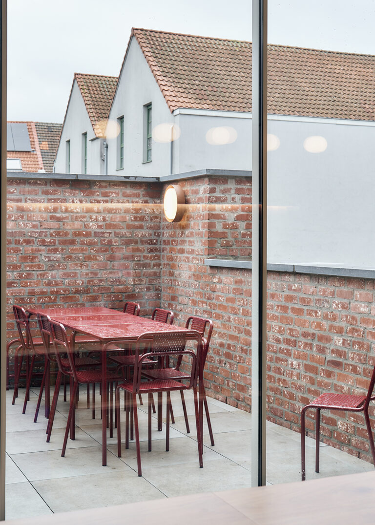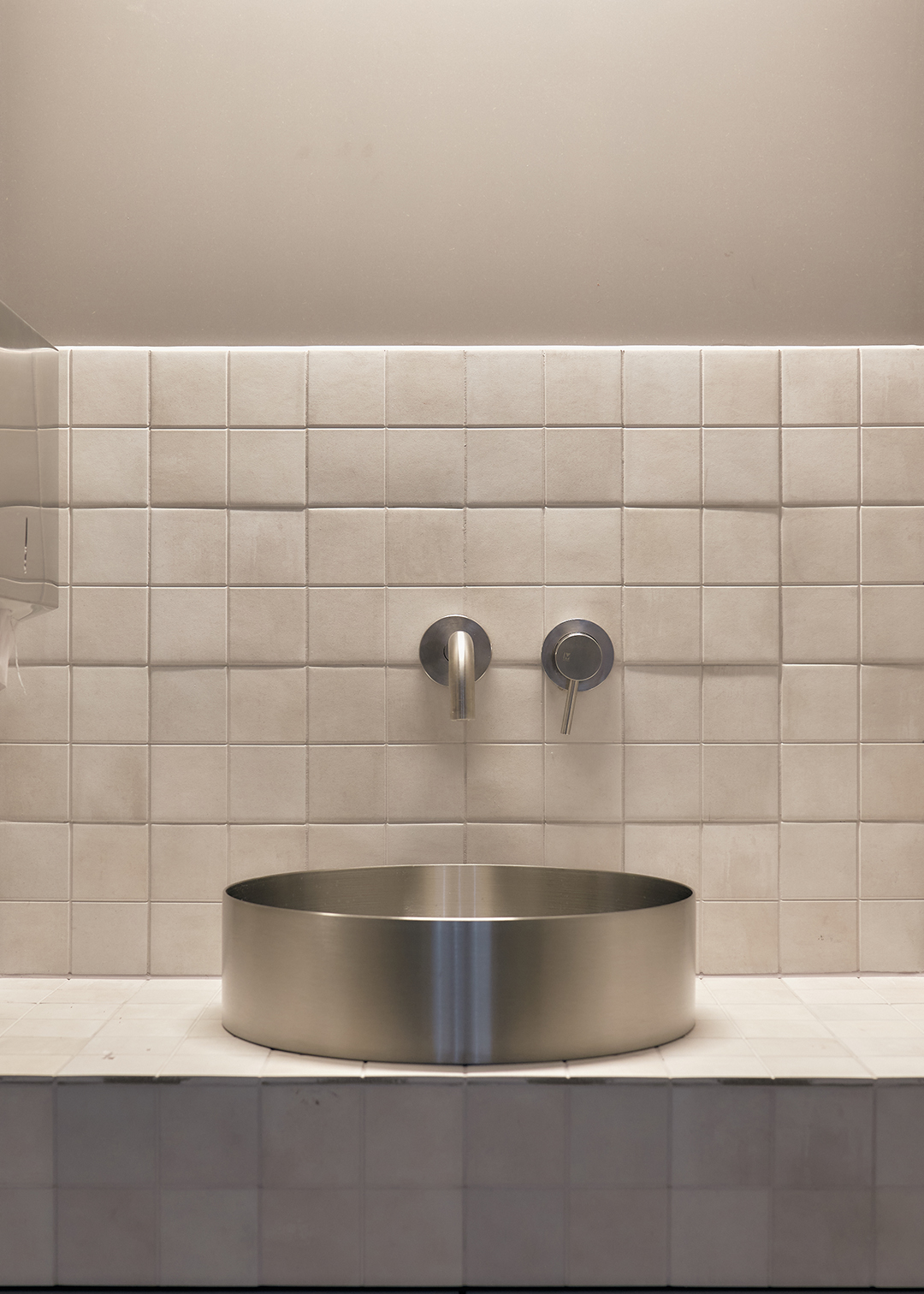 Circularity is at the core of the entire project. The space incorporates 100% recycled UNILIN wood cladding, Rotor-sourced tiles and furniture as well as collaborations with local designers HIER for the bespoke shelving and Sonian Wood for work surfaces. Every detail is intentional, shaped with care for both its users and the ecosystem that sustains it.