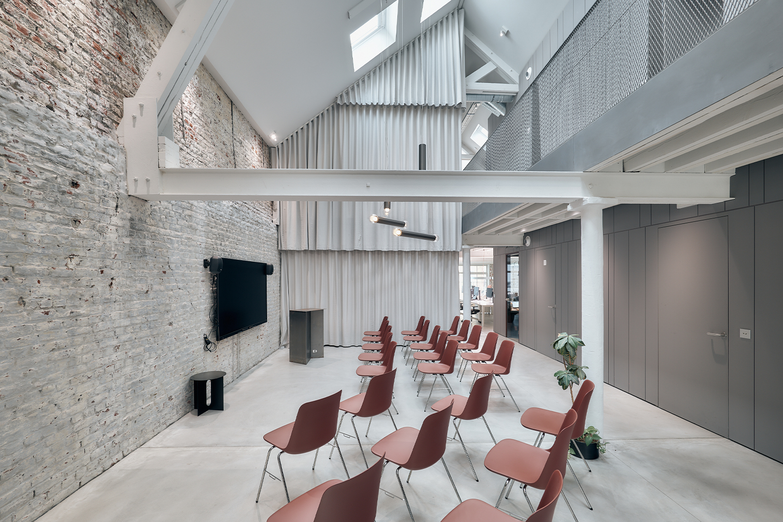 The century-old industrial building once part of the historic Brasserie Van Malder was thoughtfully transformed into a modern, multifunctional space that bridges heritage and innovation.