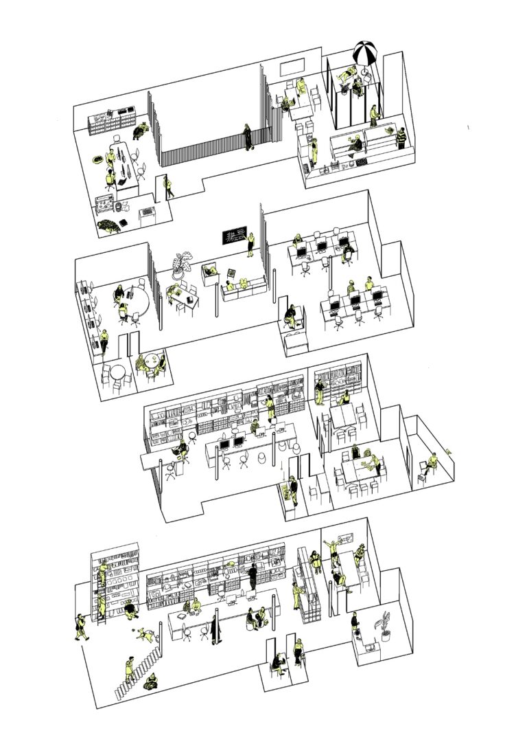 Through a participative process of internal workshops, and conversations with neighbours, fellow designers, local administration, and building partners, Materiatek gradually took shape.