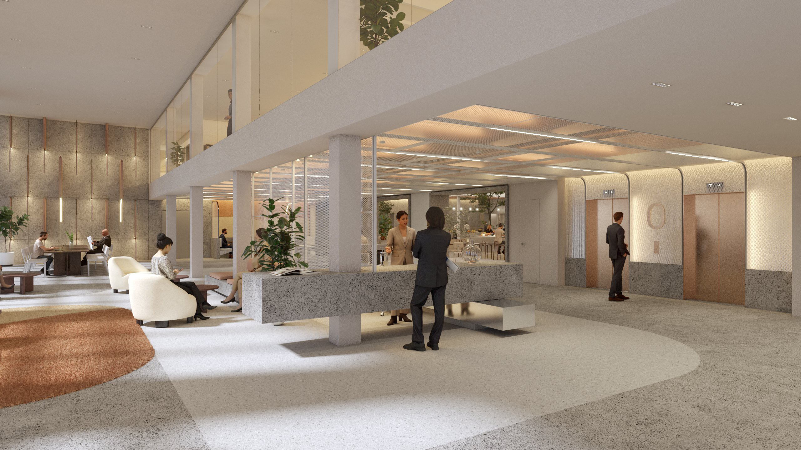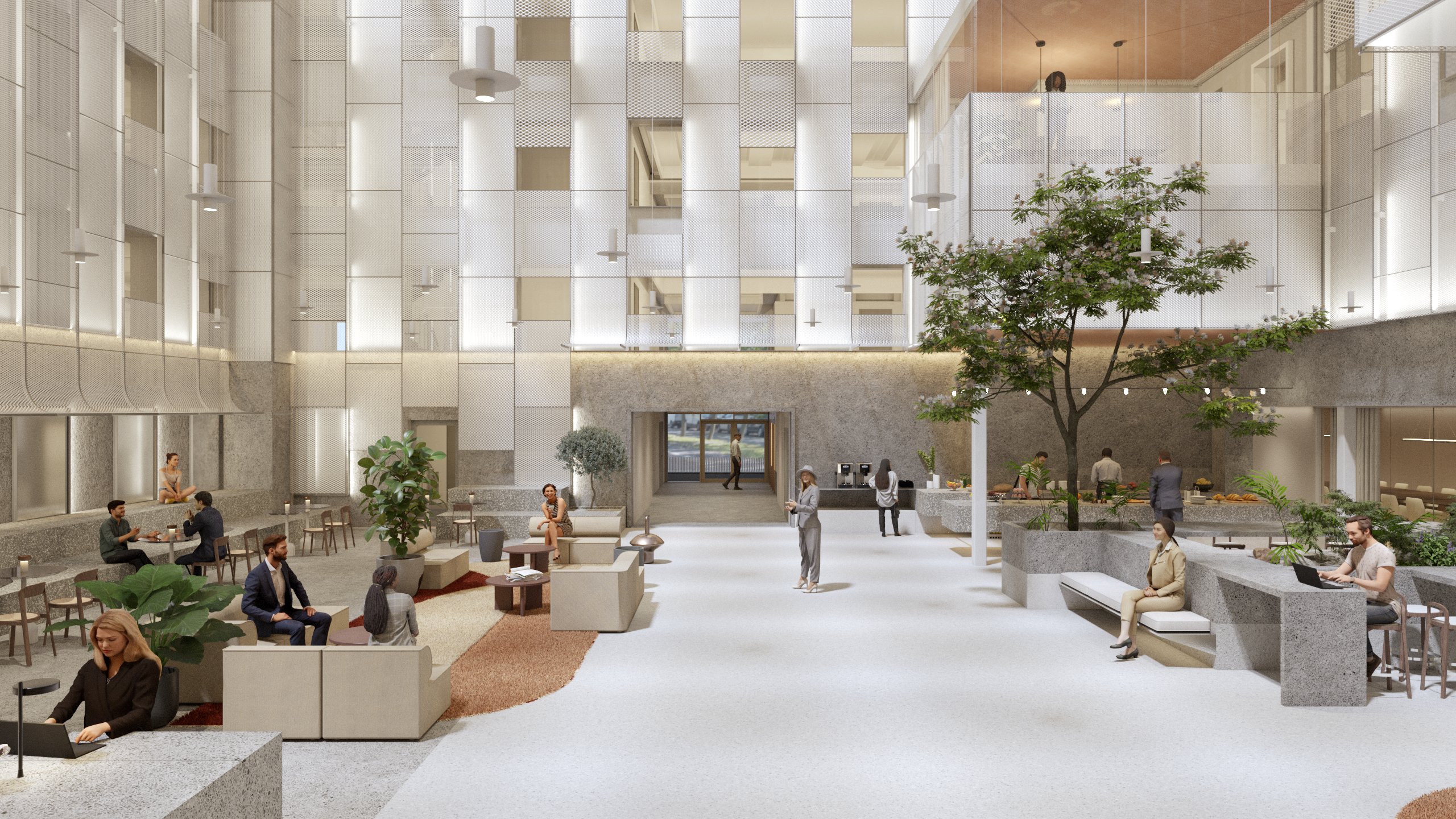 We are currently developing the execution preparation for the entrance area, elevator halls, and atrium of the Newton Building, as part of its ongoing renovation led by AG Real Estate in collaboration with Jaspers-Eyers Architects.