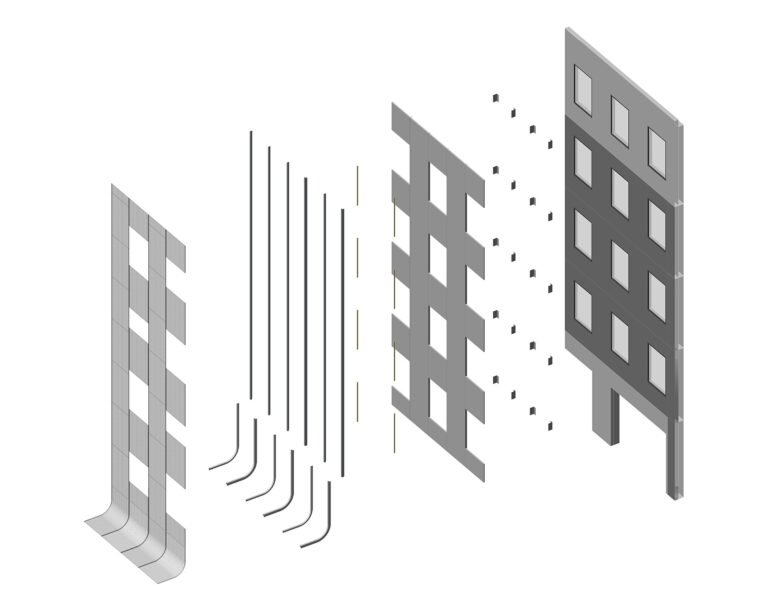 The intervention preserves the existing structure and its voids while redefining their presence with a renewed sense of coherence and identity. A delicate mesh layer wraps the façades like a second skin, embedding bespoke lighting that transforms the space into a dynamic generator of atmospheres and shifting visual scenes.