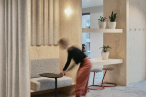The atrium evolves into a vibrant, multifunctional hub. A reception area anchors the visitor experience, while a central bar acts as a social catalyst. A variety of spaces, from open lounges to more intimate eat-and-meet settings, offer diverse atmospheres throughout the day. Different types of meeting rooms and an auditorium are positioned closer to the employees’ entrance, ensuring fluid circulation and supporting a dynamic, welcoming daily environment.