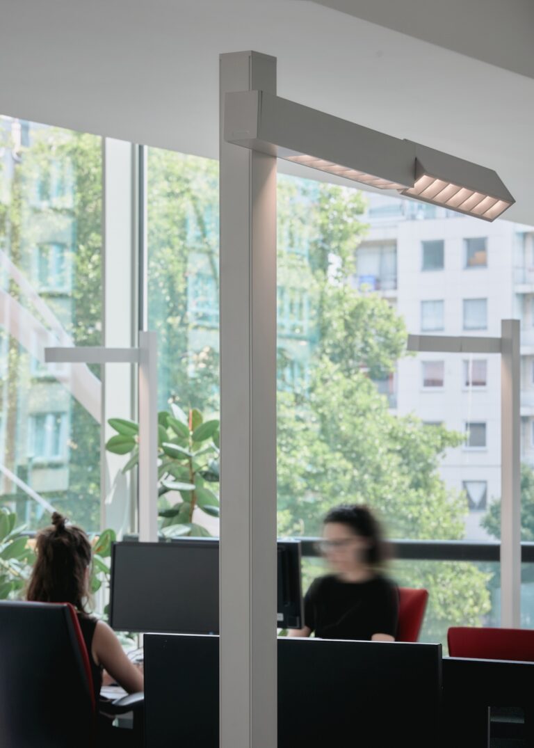 The interior was carefully studied to ensure its adaptability to the needs of a contemporary office environment, with particular attention to comfort and ergonomics. While highlighting the building’s most distinctive features, the design focused on precise interventions, whether through subtraction or addition, to optimize both functionality and visual impact.